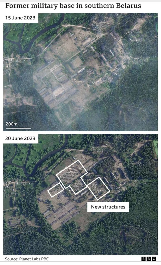 新的卫星图像显示,那里已经搭建了大约300顶帐篷。据 "白俄罗斯加云 "项目估计,该营地可以容纳约8000人。