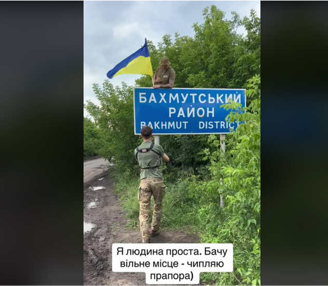 在巴赫穆特方向,乌军继续在南北两翼推进,并将乌克兰国旗插上路牌。