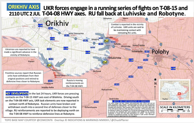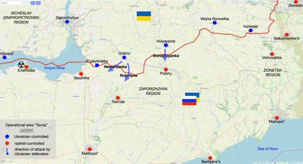在此基础上,乌军向西南可以推进到托克马克,而向东则可以进逼波洛希(Polohy),