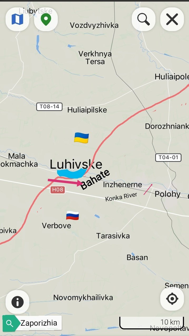 东面这一路在解放了Luhivske村之后,继续沿着康卡(Konka)河向Bahate村发起进攻。那里距离波洛希西只有12公里。