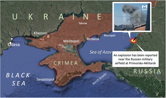 昨日俄罗斯滨海地区的阿赫塔尔斯克军用机场遭到重创(疑似风暴阴影)。该基地距离乌克兰200到300公里,是俄罗斯第960突击航空团的驻地,部署了两个中队的苏—25 SM/SM3攻击机。