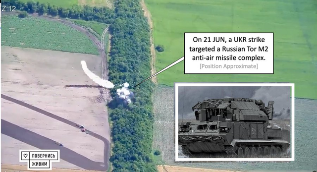 昨天,在扎波罗热前线、瓦西里夫卡南部的俄罗斯托尔M2防空系统遭摧毁。
