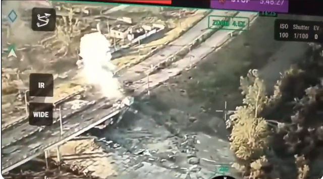 赫尔松方向,当俄罗斯到处宣传他们已经清理了乌克兰在左岸的桥头堡阵地时,乌军用视频戳破这个肥皂炮——一辆俄罗斯坦克在靠近奥列斯基的康卡河大桥上被乌军摧毁,那里距离乌军在安东诺夫桥的桥头堡3公里。