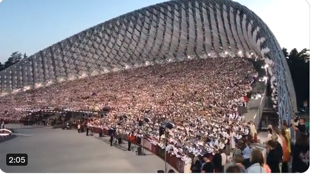 近万人在“拉脱维亚歌舞节”上高唱乌克兰国歌,支持乌克兰人民为独立自由而战。