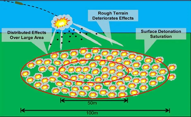 集束炸弹可根据子炸弹数量的不同,调节覆盖面积和杀伤范围,用于攻击集群坦克,装甲战斗车辆、部队集结地等集群目标,或机场跑道等大面积目标,真的是一个地狱般的东西。