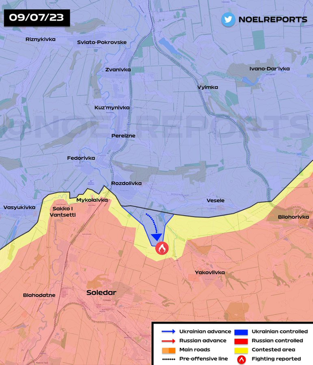 巴赫穆特方向,第54旅第3机械化营从罗兹多利夫卡(Rozdolivka,苏勒达儿以北)向东南面的雅科夫利夫卡(Yakovlivka)推进。在到达苏哈·普罗特纳湖附近后,一批步兵留下来建立阵地,而坦克和装甲运兵车则继续前进,轻松地在灰色地带跨越3 -3.5公里,打出了一个突出部来。