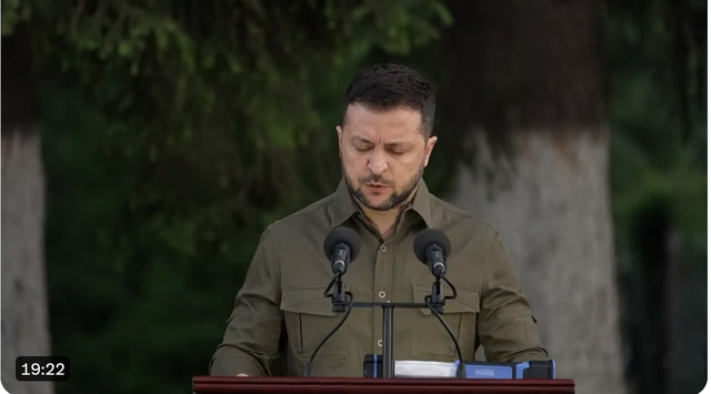 “500天的全面战争,展现了乌克兰人民的力量、光荣和勇气,我为大家感到骄傲,并感谢每一个人。我们铭记我们的英雄。不是所有的人现在都能被命名,有些英雄只有在我们的胜利之后才能被命名(指正在敌后战斗的那些人,暂时无法得到荣誉勋章),因为他们的勇气是如此特别。但乌克兰将永远感谢他们所有人”。