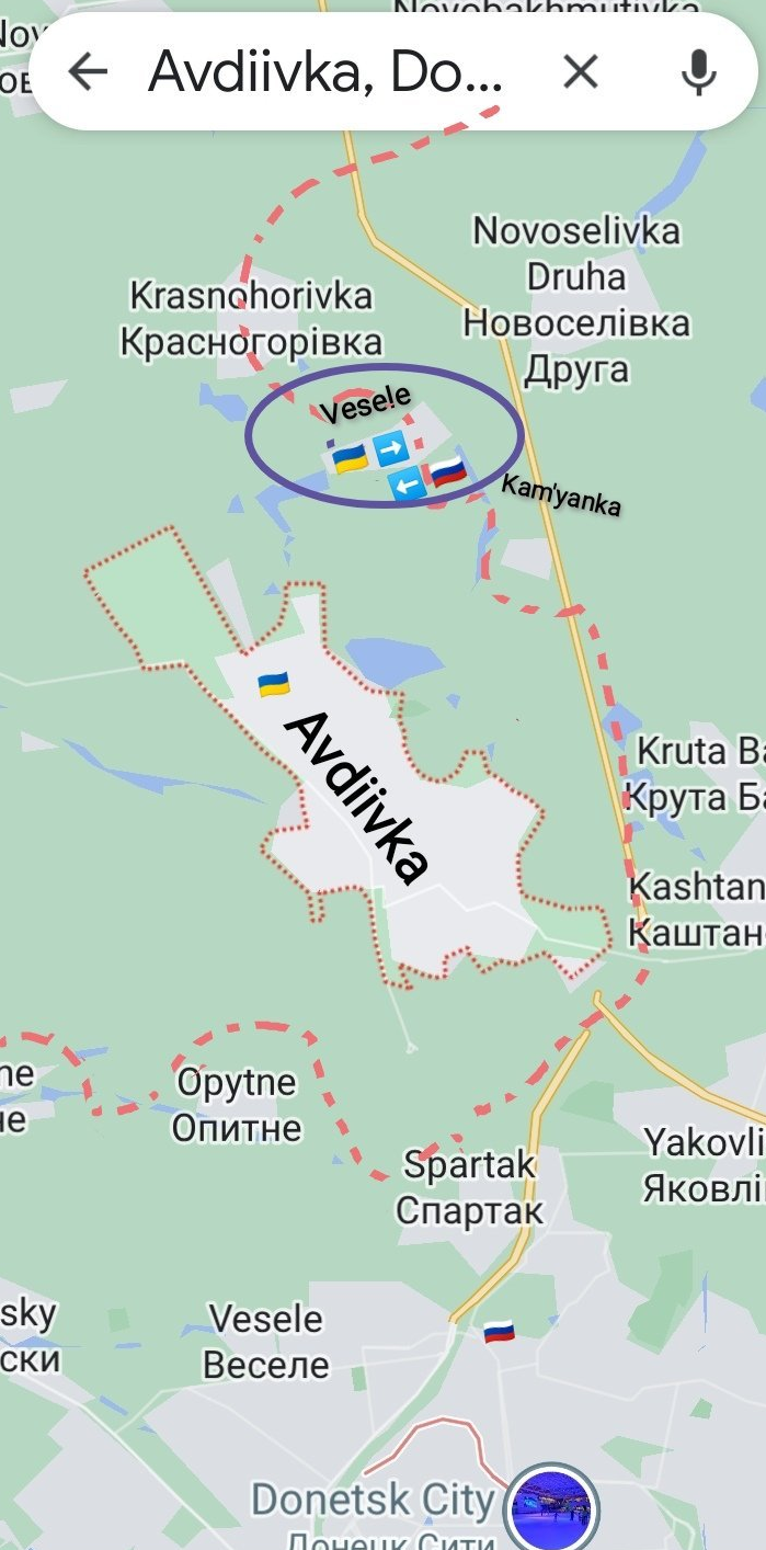阿夫迪夫卡方向,俄军第1454摩托化旅向 Vesele发起进攻,但被乌军 "欧米茄"部队与第110机械化旅击退,损失了5辆BMP-1 。