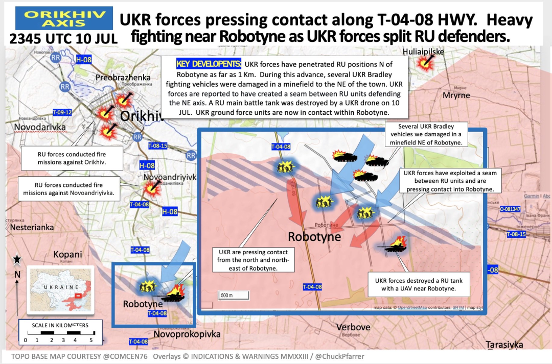 昨日第47旅的在布拉德利战车的支持下在Robotyne的北部和东北部发起攻击。