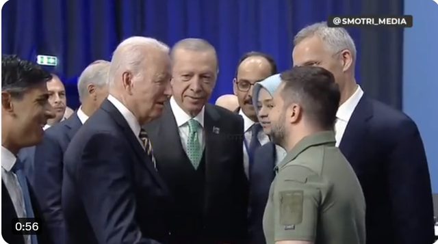 有人精心挑选了这个画面,嘲讽泽连斯基在北约峰会上备受冷落,是个可怜虫。