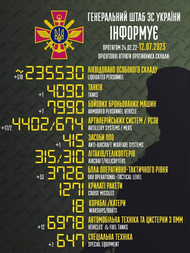 +510人,+1辆坦克,+7辆装甲运兵车,+17门火炮,+2多管火箭炮系统,+1套防空系统,+33无人机