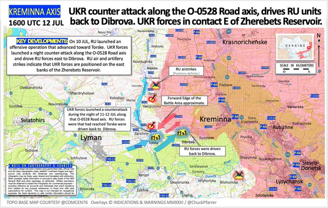 克里米纳方向, 前天俄罗斯对托尔斯克发起了猛烈的攻击,突破了国土防卫旅的防线,推进了4公里,情况一度十分危急。