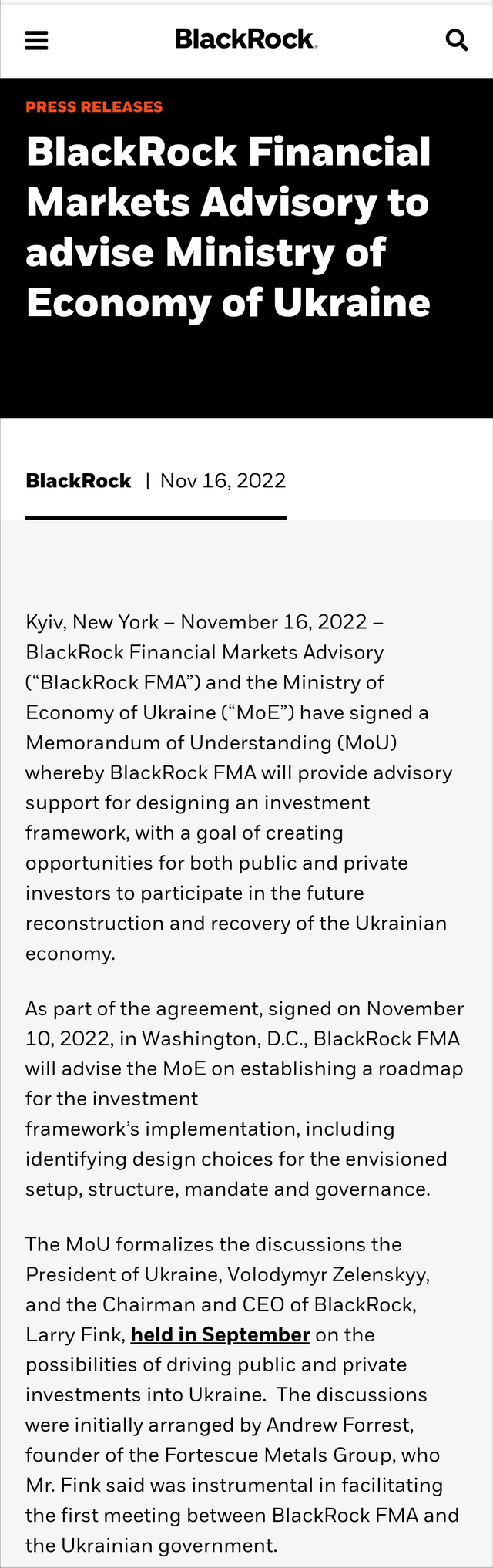 先来说说最近读者问得比较多的,所谓美国的贝莱德公司,接管乌克兰所有国有企业的事。