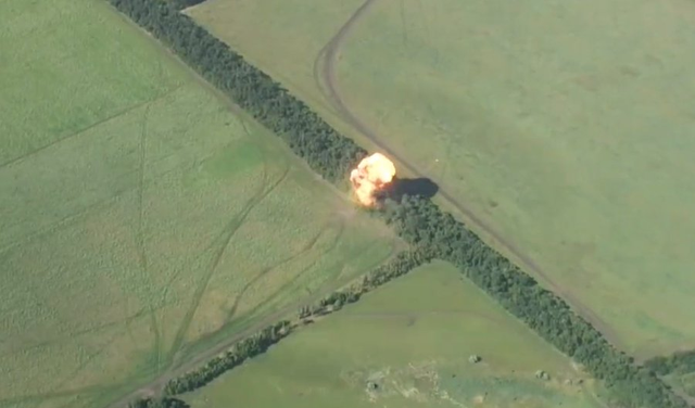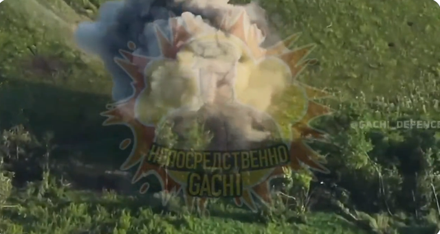 实际上却是乌克兰国民警卫队第15旅的一辆T-64坦克用拖网在清除罗伯蒂尼东北部的雷区,地雷被引爆,T-64没有损伤。。。
