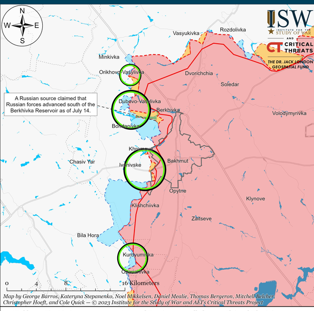 值得一提的是,北翼别尔希夫卡(Berkhivka)西北突出部的俄罗斯部队继续正遭到大规模炮击,估计将很快因失血过多不得不做出放弃的决定。