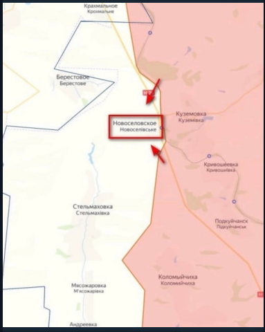俄罗斯频道声称诺沃舍利夫斯克(Novoselivs'ke)已经被俄军占领。