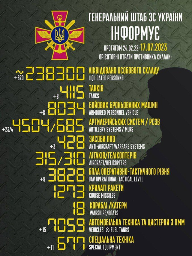 +620人,+8辆坦克,+8辆坦克装甲车,+23门火炮,+4门多管火箭炮系统,+3套防空系统,+8架无人机。