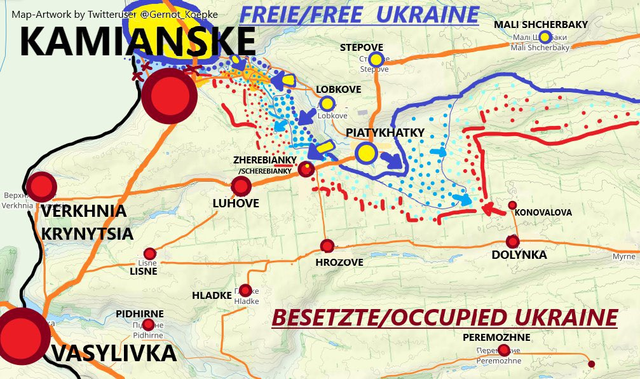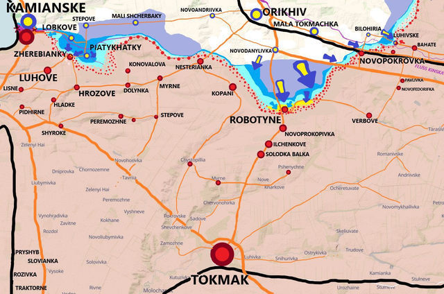 瓦西里夫卡方向,第128旅得到了第10军团第118旅第3营和一些SSO部队的增援,在Kamyans'ke以东取得了一些进展,将俄军从第聂伯河河口另一侧的一个据点中赶了出去。