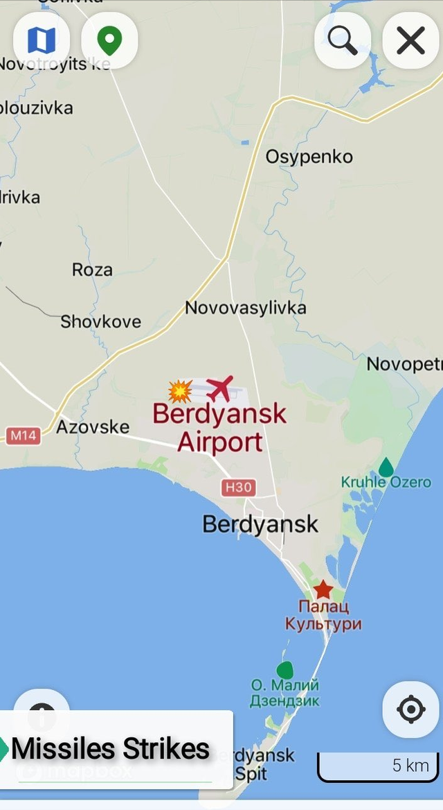 乌克兰军队发射导弹袭击了别尔江斯克俄罗斯空军基地。