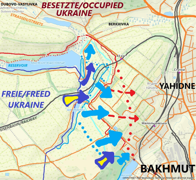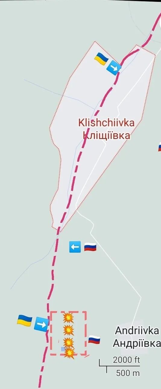 巴赫穆特南翼 ,乌克兰军队已向K村西北推进,占领了一个关键的防御战壕,目前那里正在发生激烈的战斗。