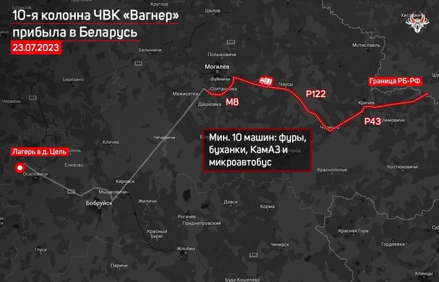 瓦格纳第十纵队的装甲运兵车抵达白俄罗斯,看起来其总部是真的要搬迁到白俄了。