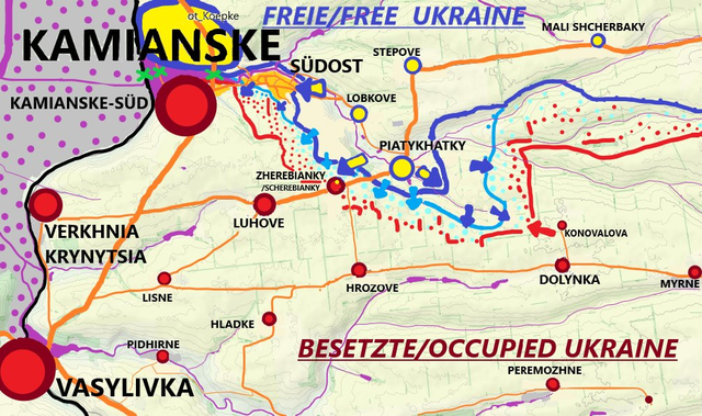 扎波罗热前线,在瓦西里夫卡方向,乌军控制了卡缅斯科镇的部分地区,目前战斗仍在进行中。