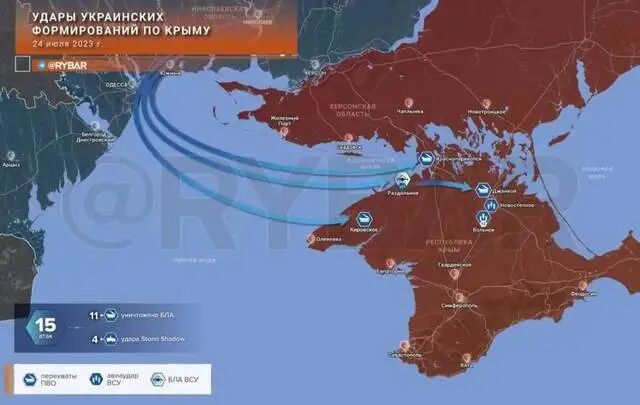 在另一个方向,乌军的苏-24飞机发射了四枚风暴之影巡航导弹,袭击克里米亚的目标。