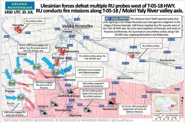首先是在K村方向伏击了俄军的增援部队,后者在付出了惨重的伤亡后遁走。根据最新消息,俄军已经完全撤离了这个多次出现在战报里的村镇,但还没有得到证实。
