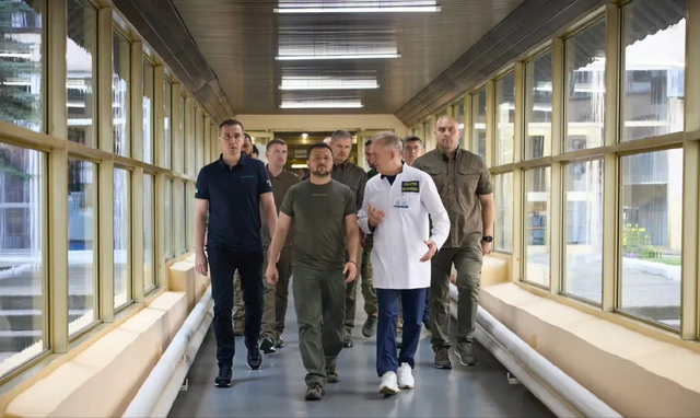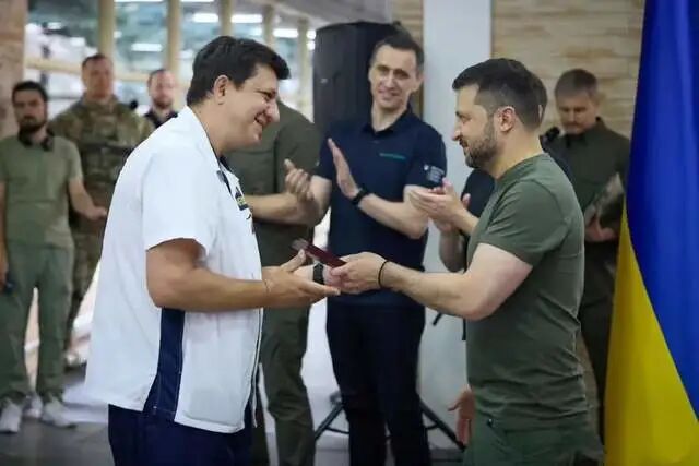 随后他前往南部,视察了第聂伯罗医院,表彰他们积极救治在俄军导弹袭击中受伤的民众。