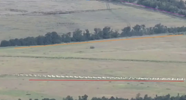 在俄方发布的视频中,一辆乌军装甲车正在接近反坦克沟渠和所谓的 “龙牙”。