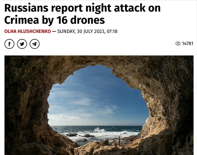 此外,俄罗斯临时占领的克里米亚也遭到大规模无人机袭击。