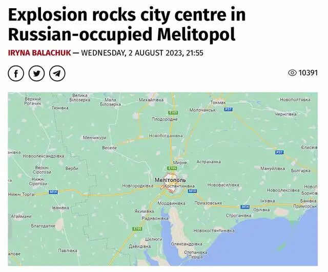 纵深方向,8月2日晚,梅利托波尔市中心发生爆炸。