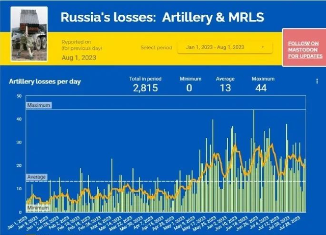 自5月以来,俄军火炮损失异乎寻常地多,这让乌军在炮战中取得了一定的优势,并且开始逐步压制俄军炮兵力量。
