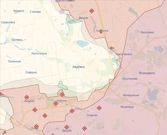 阿夫迪夫卡方向,乌军南翼取得较大的成功,迫使俄军从前沿阵地撤退。乌克兰武装部队在此处切入的一个楔子,很可能对阿夫迪夫卡的俄军阵线构成威胁。