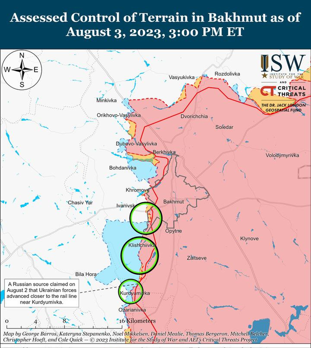 巴赫穆特方向,北翼仍以重炮对决为主,地面战斗方面,乌军昨日在别尔希夫卡和贾希德内取得小幅进展。