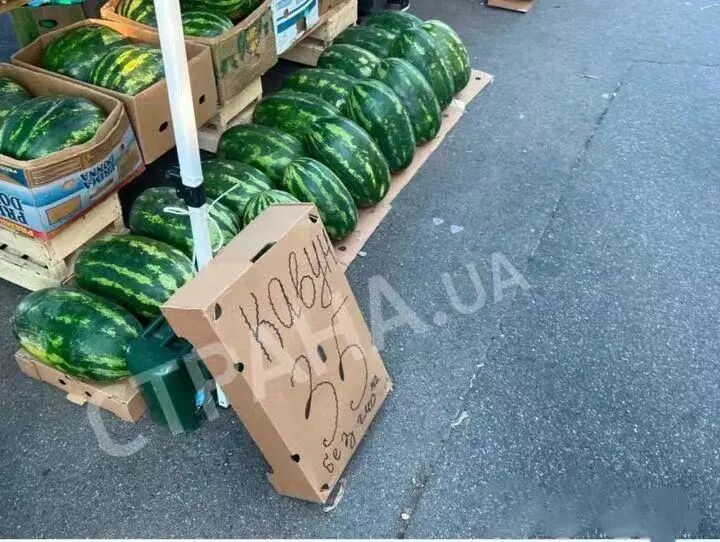 赫尔松的西瓜上市,价格在6-8元人民币/公斤之间。