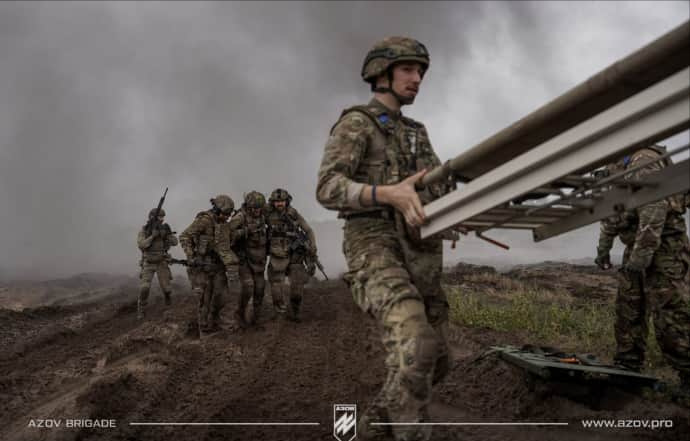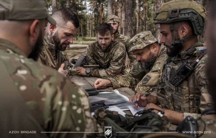乌克兰亚速国民警卫队旅在指挥官丹尼斯·普罗科彭科(别名雷迪斯)的领导下进行了战术演习,他最近从土耳其回到乌克兰。