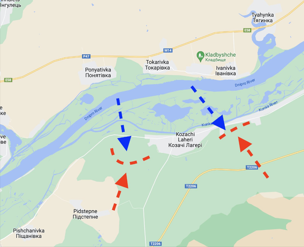 赫尔松方向,乌军已成功地在科扎奇拉赫里(Kozachi Laheri)以西建立了一个桥头堡。