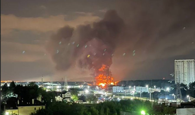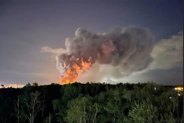 莫斯科郊区的夜晚也不平静,一个国防部仓库爆炸起火。