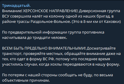 有俄罗斯博主报道称,新卡霍夫卡以南 8 公里处的M14 高速公路附近,一支俄罗斯大型纵队,遭到了由乌克兰特种部队和游击队组成的突击队的伏击。