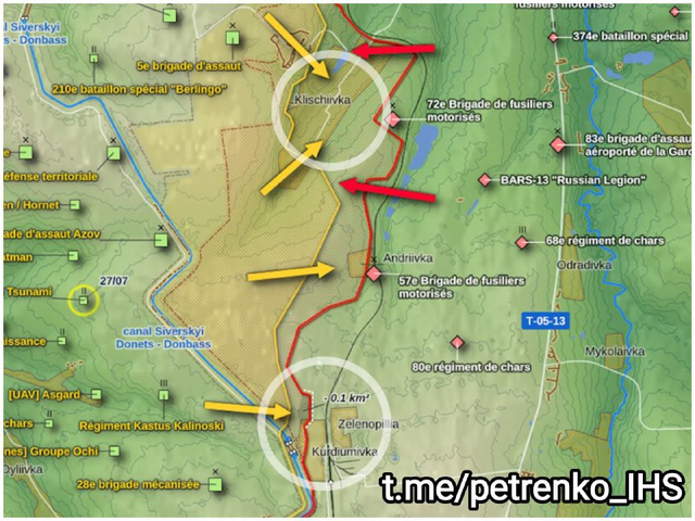 此外,乌克兰第 253 领土防御营“AREJ”的部队已经成功跨越莫克里亚利(Mokri Yaly 河), 从西侧围攻俄罗斯军队在南部剩下的阵地。昨天俄罗斯人试图向这里派出援军,但遭到乌军猛烈的炮击,最终不得不远遁。