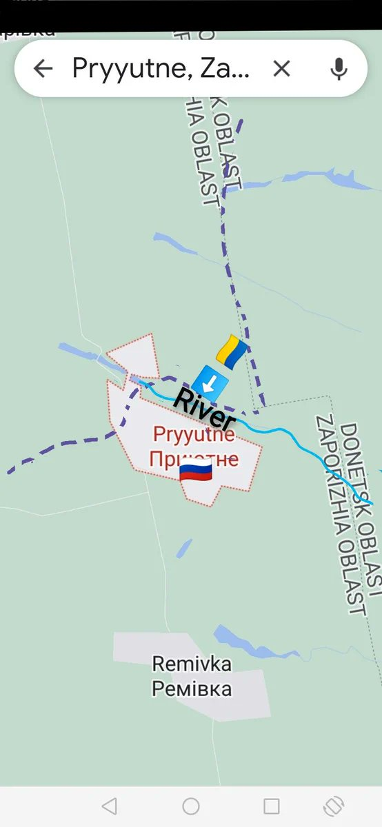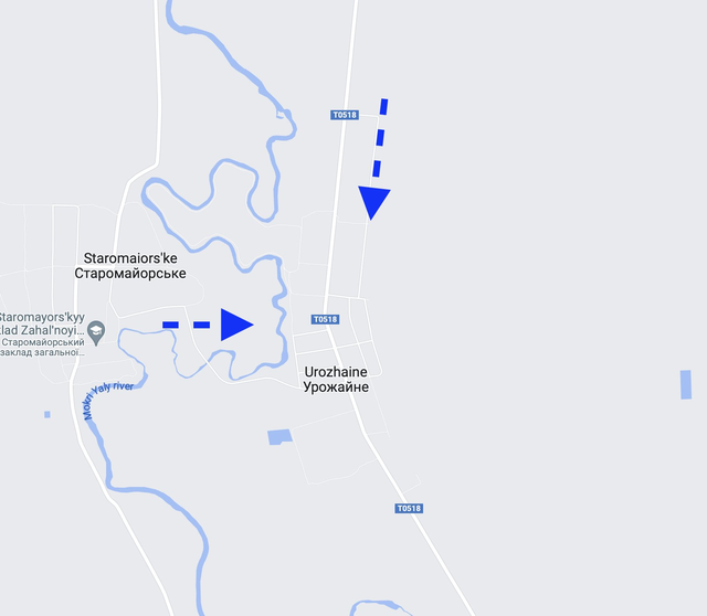 扎波罗热东线,在斯塔罗马约尔斯克( Staromaiorske )以西,普留尤特涅(Pryyutne)村的部分地区受到俄罗斯人的迫击炮火力攻击,意味着他们已经不在那里了,乌军正在越过它向西和东推进。