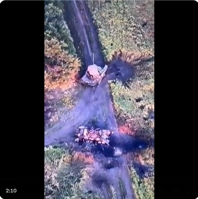 基辅邮报发布独家视频,证实昨天乌克兰坦克和布拉德利战车与俄军在罗伯蒂尼村南之外作战——这说明村庄本身已经基本解放了!