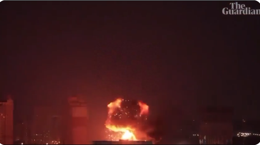 英国《卫报》发布的一个视频,展示了俄罗斯导弹碎片击中基辅一个区的欧尚超市的瞬间。