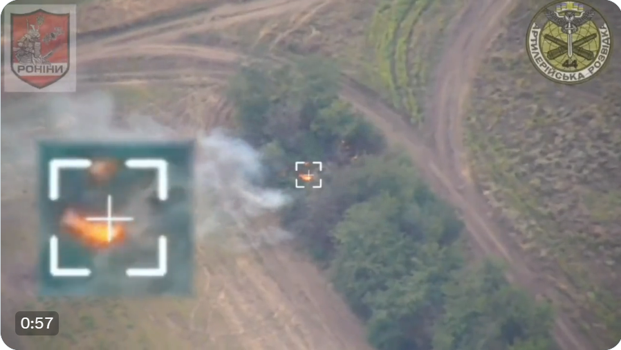在战斗中,第44独立炮兵旅的士兵在第65独立机械化旅的空中侦察支援下,摧毁了俄罗斯203毫米Pion自行火炮系统