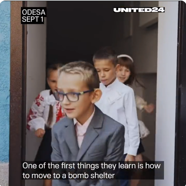 新学年的第一天,敖德萨的孩子们要学会的第一件事,是如何快速跑到防空洞。