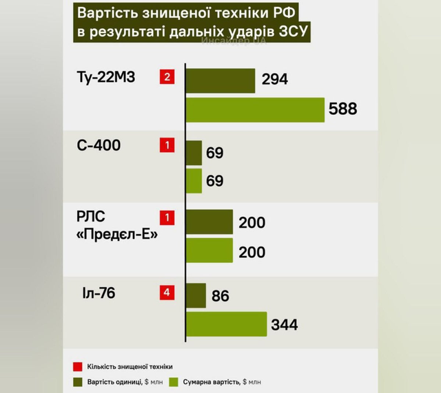 仅8月,乌军打掉的俄罗斯飞机及防空系统,就价值12亿没有。包括两架Tu-22M3轰炸机、四架Il-76军用运输机、一套S-400防空系统和一个超视距探测站。