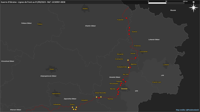 普里尤特涅-扎维特涅-巴赞尼亚-旧莫利尼夫卡方向,乌克兰成功地从北部进入扎维特涅-巴赞尼亚(Zavitne-Bazhannya), 激烈的巷战正在进行之中。