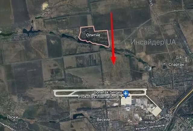 一路从阿夫迪夫卡向西南,沿T0505公路推进到顿涅茨克机场西北部的最后一个村庄奥皮特内(Opytne)。目前奥皮特内村本身可能被乌克兰部队(乌克兰第53旅)占领,或已经进入灰色地带。