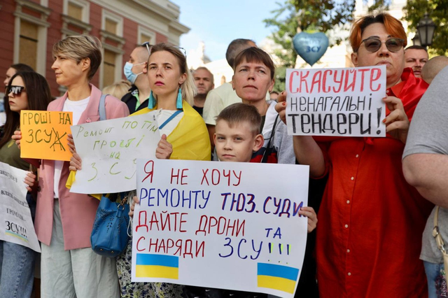 乌克兰敖德萨发生抗议活动,要求取消城市道路建设的采购,并将所有资金重新分配给武装部队。